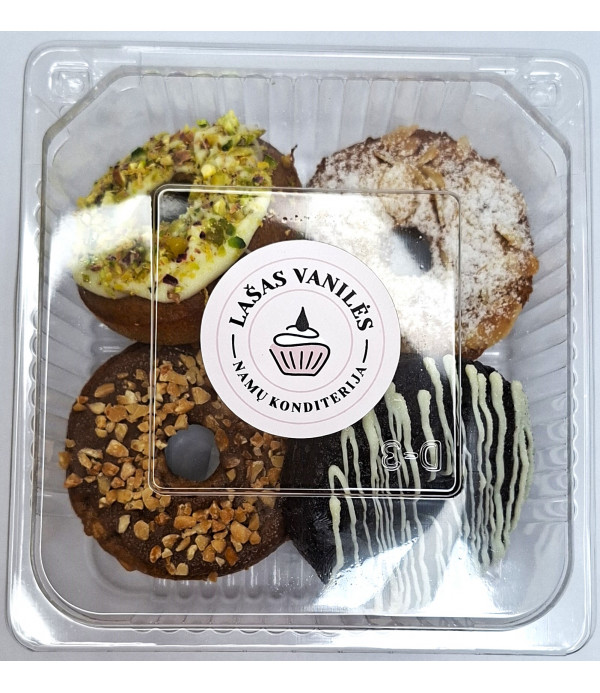 Spurgų rinkinys be glitimo ir laktozės su vaisiais ir daržovėmis.