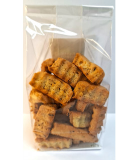 Šie sausainiai – tai skanus ir traškus užkandis, kuriame susijungia anakardžių riešutų švelnumas ir brandinto sūrio pikantiškumas, praturtintas itališkais prieskoniais. Idealiai tinka tiek užkandžiauti, tiek mėgautis su mėgstamu gėrimu. Šie sausainiai puiki alternatyva žmonėms netoliaruojamtiems glitimo ir laktozės.